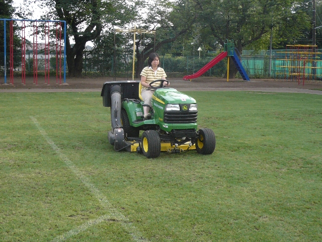 以上のように芝生管理の中で大変な作業と思われている「芝刈り」や「除草」は、ちょっとした知識と目的とする芝生の状態によってローメンテナンスで管理することが可能です。 「芝生は、金がかかるし管理も大変」結構多くの方が芝生に対して持っているマイナスのイメージです。 事実ゴルフ場やスポーツ競技場などでは、実際驚くほどの手間とお金をかけています。 でも、それと同じ管理が校庭や園庭で必要なのでしょうか? 答えは「ノー」です。 競技場のピッチやゴルフ場のグリーンと校庭や園庭の芝生は目的が違います。 目的が違えば管理方法も違ってくるのです。校庭や園庭の芝生化を考える時に、今まで私達が持っている芝生に対しての先入観や思い込みの知識をもう一度見直して、芝生化の目的について十分に検討することが大変重要なことだと思います。